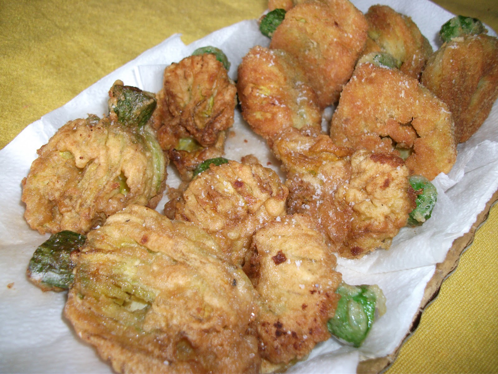 Lavate molto delicatamente i fiori di zucca togliendo il pistillo. Lasciate asciugare. Nel frattempo preparate la pastella, sbattete le uova e aggiungetevi il sale, il formaggio grattuggiato e il pepe. Riempite i fiori di zucchina con la raspadura e la mortadella, passateli nella fatina e in ultimo nelle uova. Friggete in abbondante olio finchè non saranno dorati. Serviteli caldi o adirittura freddi.